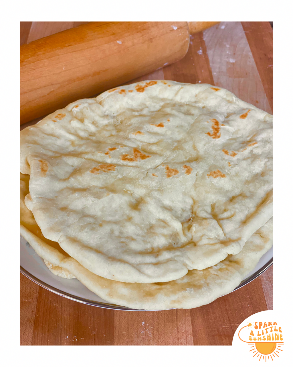 Nothing is better than having your bread freshly baked, warm, soft, buttery - ready to melt in your mouth. This naan bread recipe yields 9 dough balls, which can be enjoyed as a solo serving size to dip into your stews, soups, hummus, yogurt, wraps on the go, or personal pan pizza dough. You may also combine 2+ dough balls for a pizza flatbread. See our other recipes that incorporate the beautiful homemade bread from this one.